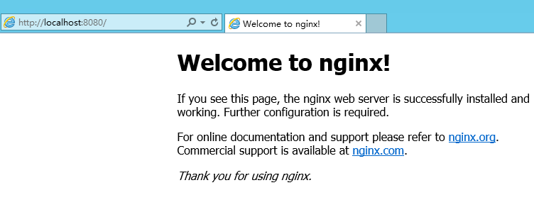 開瀏覽器,輸入地址:http://localhost:8080 (因為我們前面配置了8080端口),訪問頁面,出現(xiàn)如下頁面表示訪問成功。
