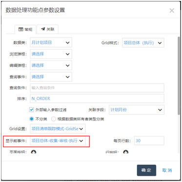 Grid行背景色配置是在 3000 功能點顯示前事件里完成的。系統(tǒng)發(fā)現(xiàn)我們在3000功能點配置了 顯示前事件,如下圖