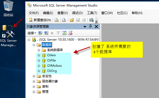 為合同管理系統創建數據庫 2022/06/20 分類:產品中心 產品手冊 實施方案 1974 為合同管理系統導入數據庫 在SQLserver? 服務安裝成功后,運行 數據庫生成程序 點擊 Htdbcreate.exe? 右鍵 “以管理員身份運行” 運行后,數據庫文件會存放到 c:\sqldata 目錄下 (這個目錄現在不能修改),若需要將數據庫文件放到別的目錄,這個需要咨詢廠家技術人員 這樣,合同系統的數據庫就已經安裝了 我們進入SQL管理器能看到: 標簽:手冊腳本 上一篇: SQLExpress 2008R2 安裝說明 下一篇: 共好合同軟件所需要 IIS環境手工設置選項參考