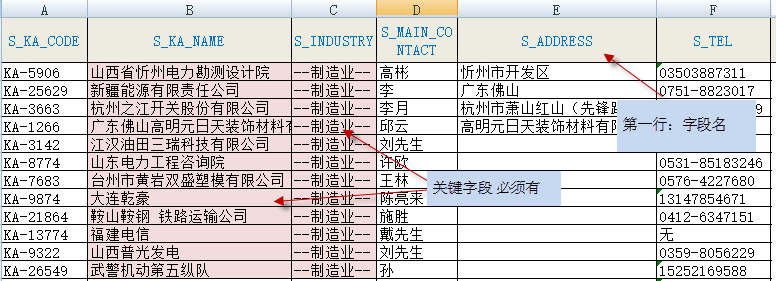 在導入過程中,我們先將企業的歷史客戶先輸入到excel表中,表的格式參考下圖