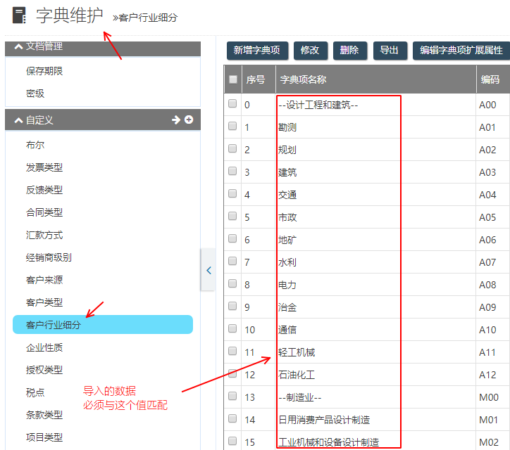其中:S_INDUSTRY 字段,關聯的是系統定義的“數據字典”-“客戶行業細分”