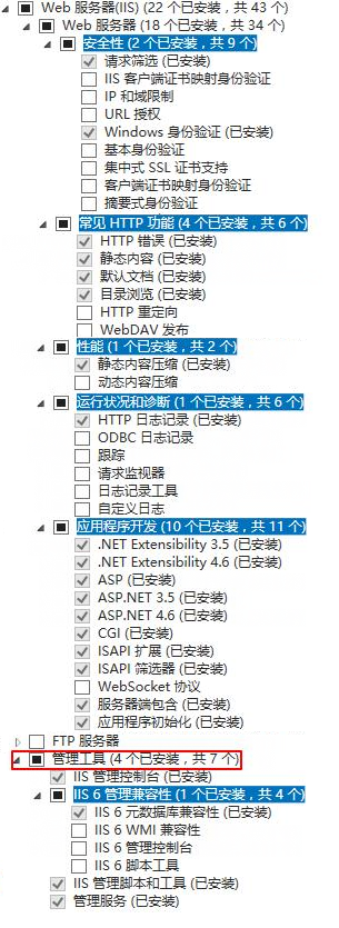 Internet Information Services 部署合同管理系統(tǒng)或項(xiàng)目管理系統(tǒng)的時(shí)候需要用到。因此必須在系統(tǒng)中選擇部署。一下截圖將 IIS所需的選項(xiàng)做了描述,大家部署前盡量參考截圖選項(xiàng)進(jìn)行。(因?yàn)橄到y(tǒng)版本 有差異,或許我截圖中有的 ,在你的系統(tǒng)中沒有,這個(gè)也不要緊。有相似的都選上就可以)