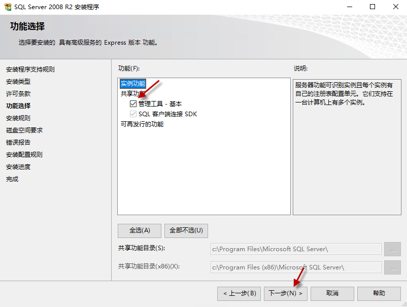 .Net Framework 3.5 環(huán)境是因?yàn)镾QLServer 2008R2 用到,若自己已經(jīng)有SQLServer ,那么這個(gè)可以不選擇